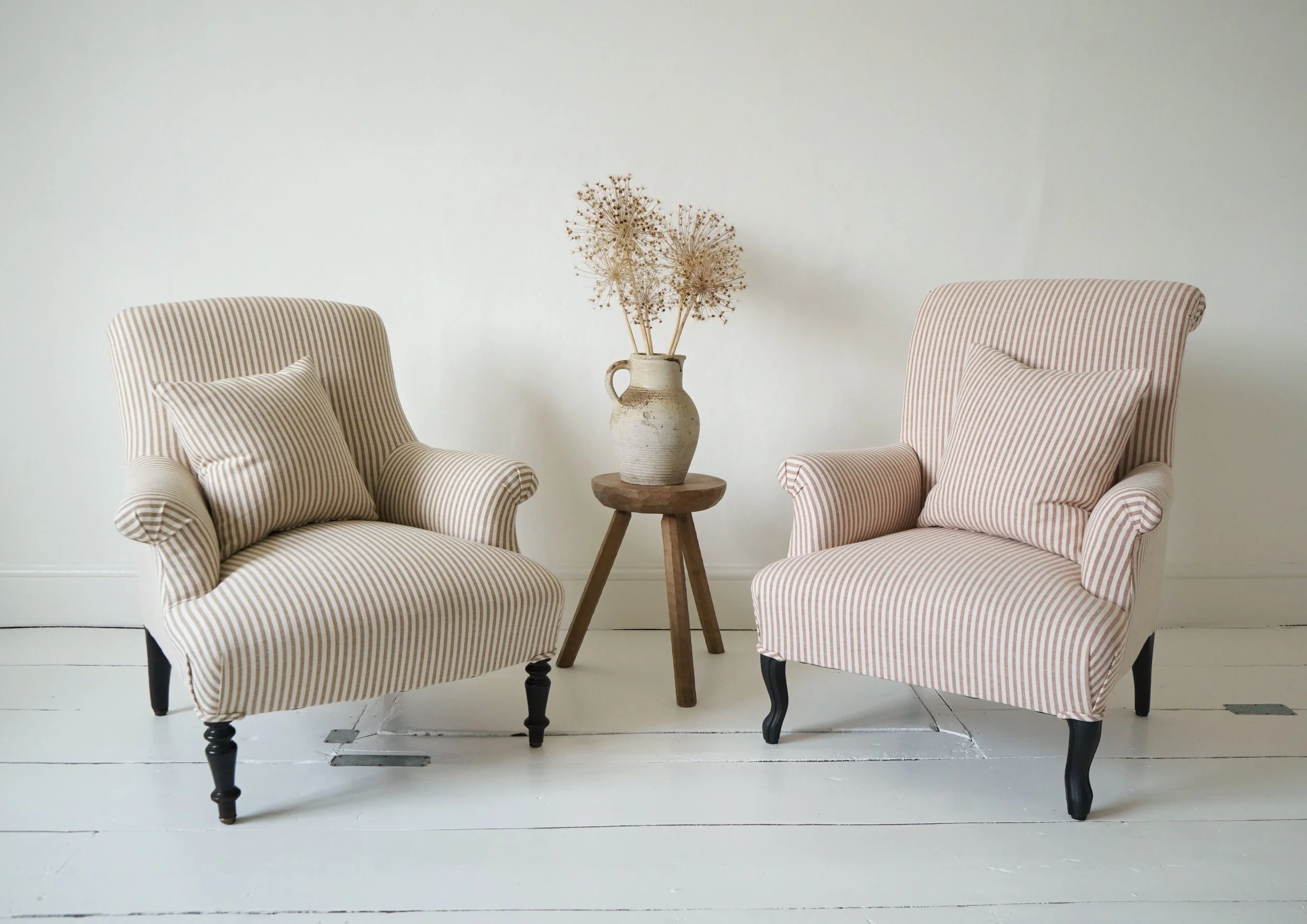 Pair of French antique chair in striped linen. Photo: Cart-House